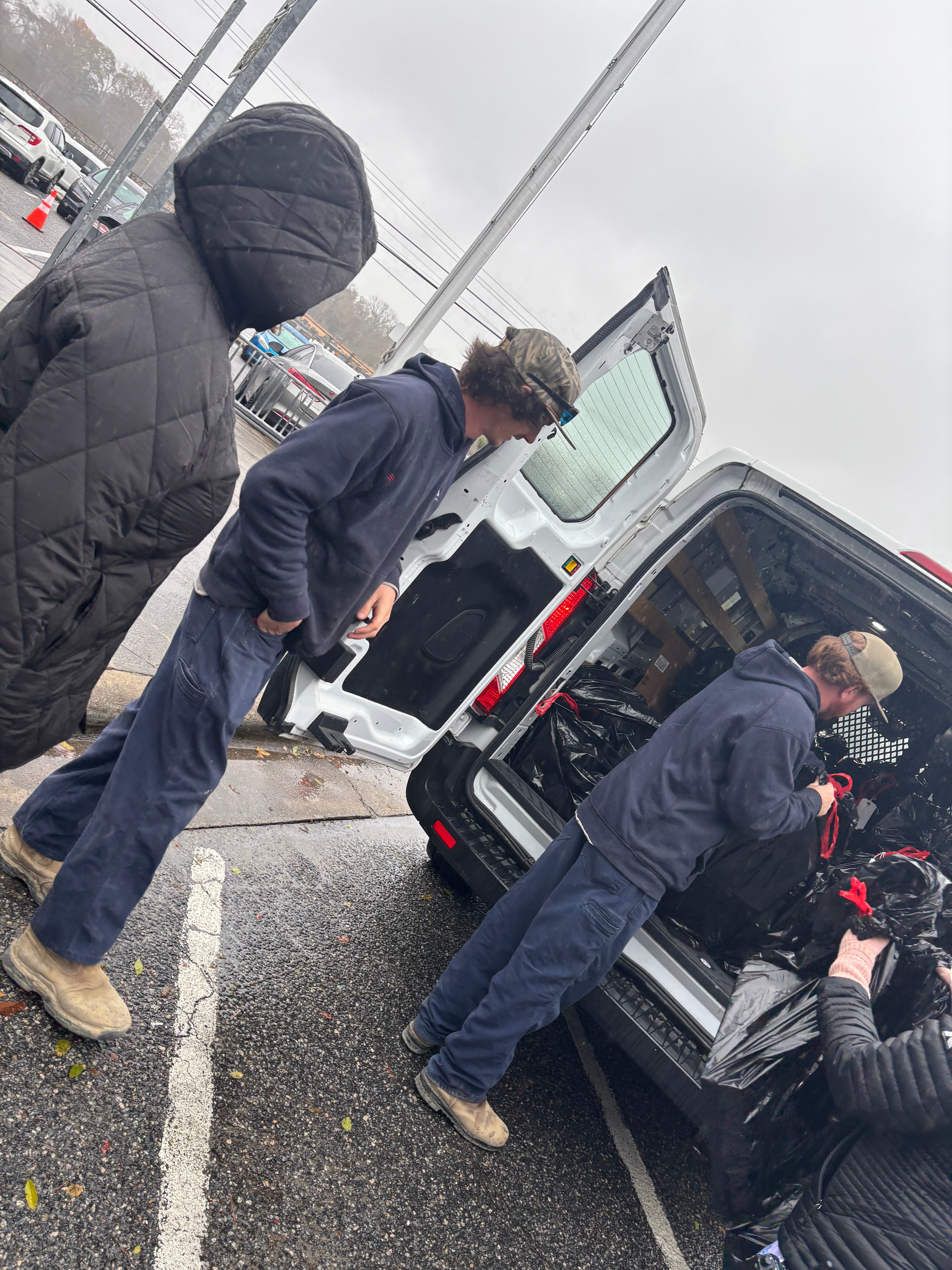 Albemarle EMC apprentice linemen Waylon Davenport and Owen White recently delivered Christmas toys to P.W. Moore Elementary School, in Elizabeth City. Toys for more than 500 children were delivered to schools throughout the co-op's service area. School coordinators will then deliver the toys to families they have identified as in need of help.