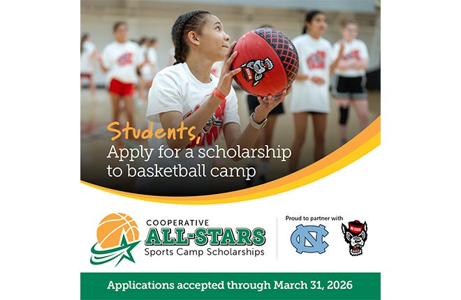 More than 50 students will be awarded Cooperative All-Stars Sports Camp Scholarships from electric cooperatives in North Carolina. Now in its 23rd year, the scholarship program demonstrates the electric cooperatives’ commitment to building a brighter future through continued support for education and community programs.